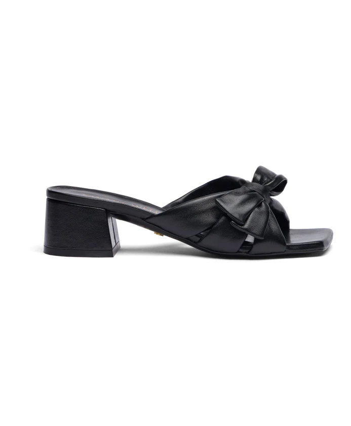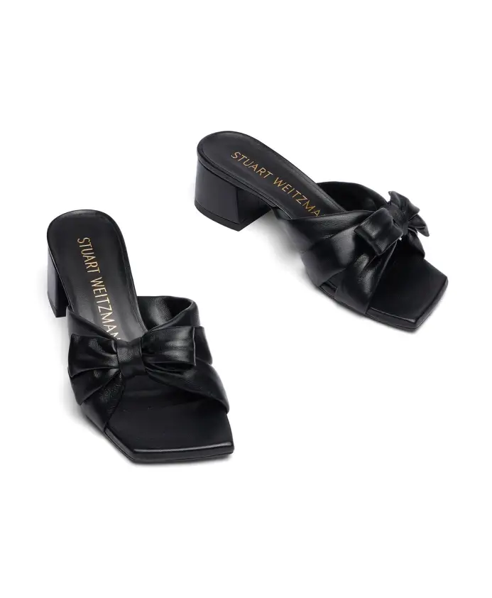 Поднимите свой стиль с помощью Stuart Weitzman SOFIA 45 SLIDE. Эти женские босоножки на каблуке украшены современными и элегантными деталями, в том числе крупным бантом. Эти квадратные шлепанцы, изготовленные нашими мастерами в Испании, установлены на расклешенном блочном каблуке высотой 45 мм, что придает образу художественный вид и при этом обеспечивает удобство в ношении. Эти туфли, изготовленные из лакированной кожи наппа, модны и удобны в носке.
