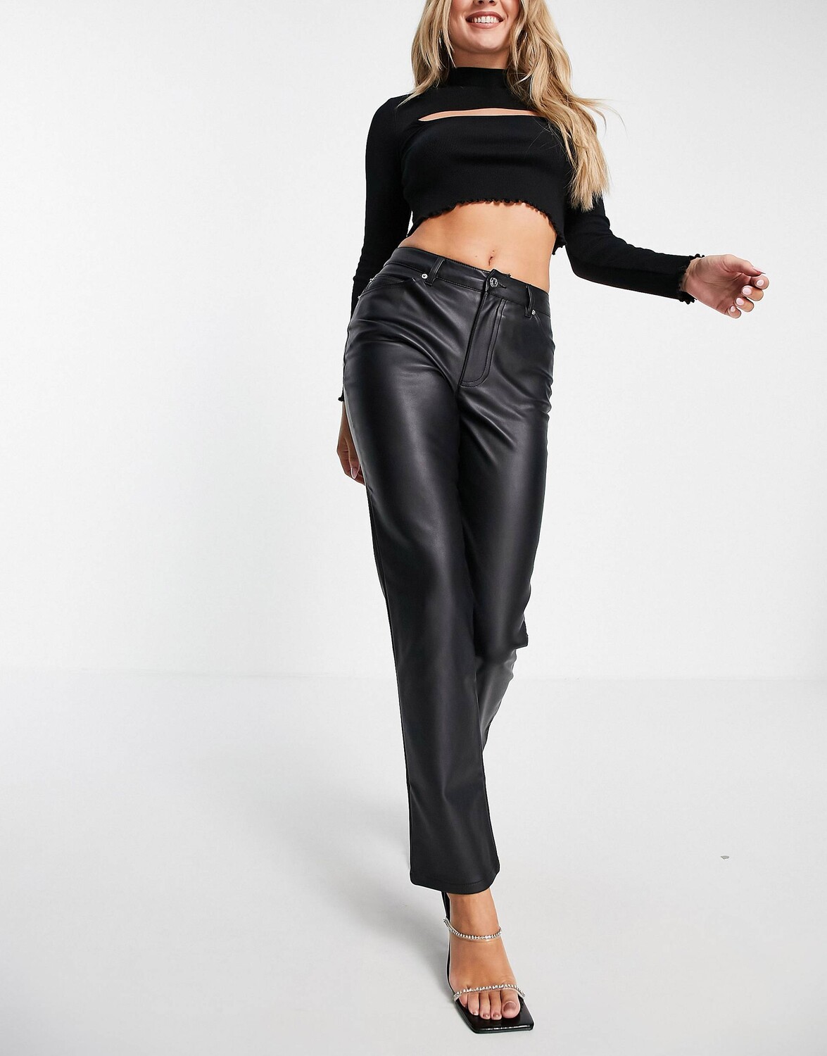Черные кожаные брюки прямого кроя ASOS DESIGN 90's