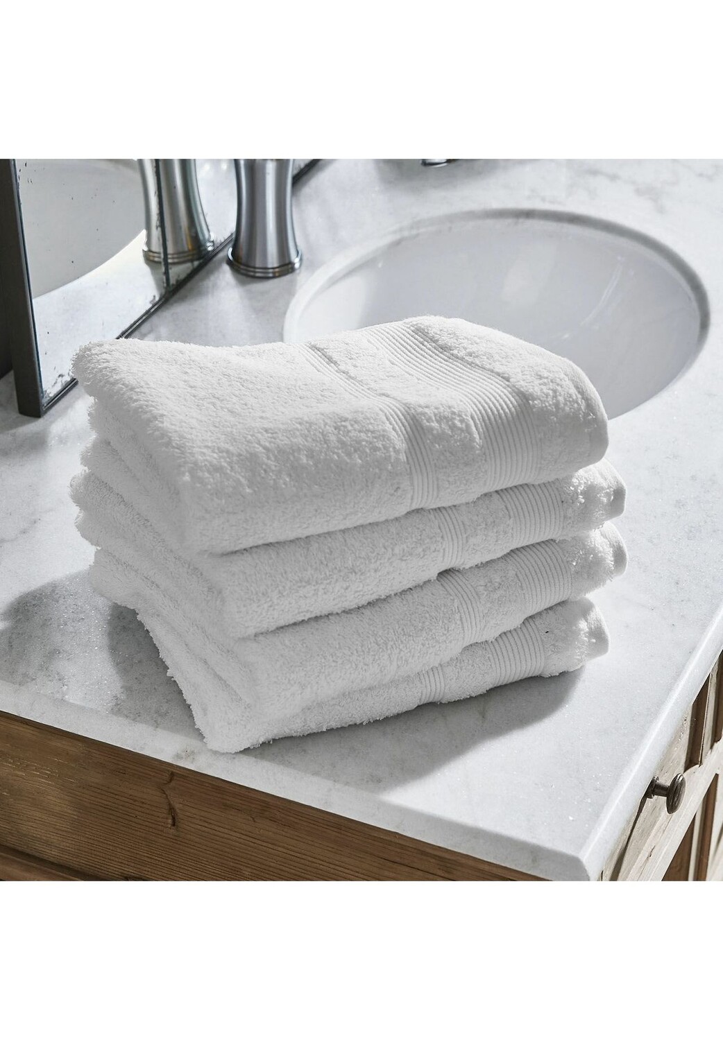 Описание товара: С элегантной каймой под вафельный пике. Высококачественная махровая ткань производства Португалии. Мягкий, впитывающий и прочный. Будь то быстрое мытье кошки или долгий душ – после этого обязательно нужно взять полотенце. Как чудесно иметь средство, которое не только быстро впитывает влагу, но и балует нежными ласками, пока вы высыхаете. Комплект из 4 полотенец изготовлен из высококачественной, приятной на ощупь махровой ткани и размером 50 х 100 см представляет собой классическое полотенце для повседневного использования. А традиционный белый цвет в сочетании с красивой каймой вафельного пике придает ванной комнате элегантную свежесть. В том же дизайне имеется также набор банных полотенец из 2 штук (23374) и набор полотенец для гостей из 6 штук (22372).