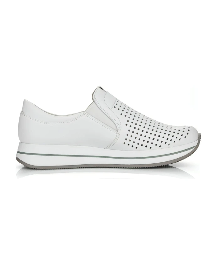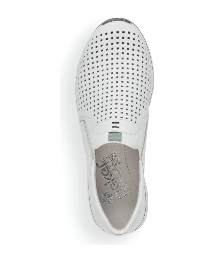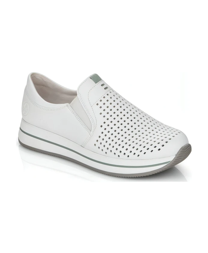 Повысьте уровень своей игры в кроссовки с этими женскими кроссовками Rieker. Эти кроссовки из белой кожи идеально подходят для взрослых, которые ищут удобную и стильную обувь. Код продукта N4546-80.