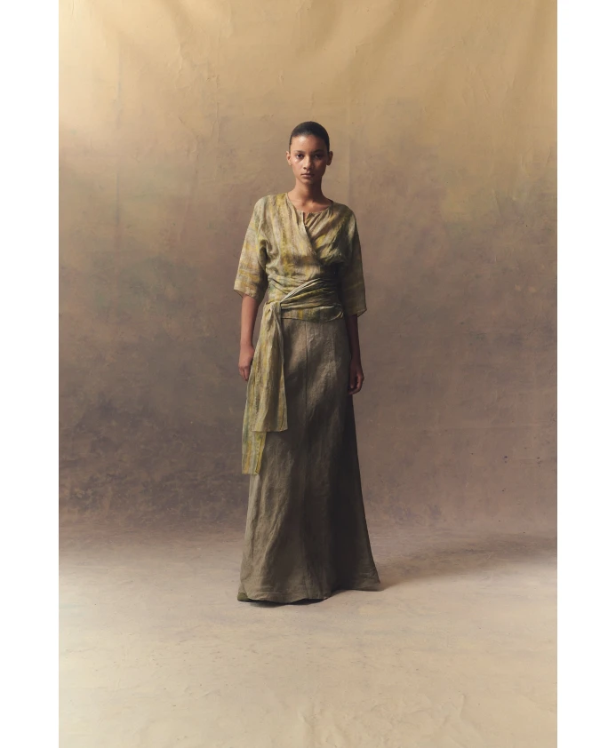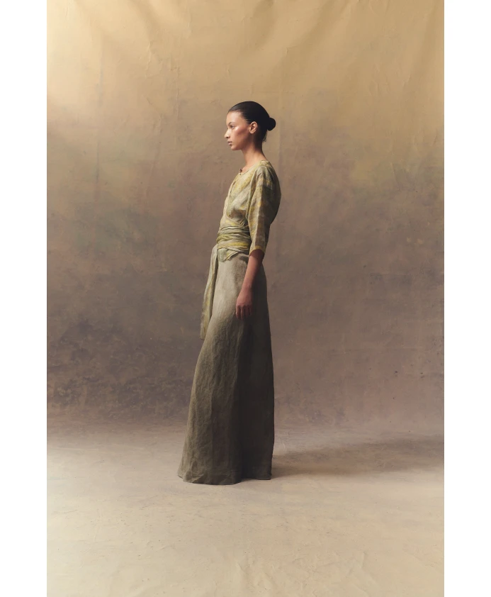 Улучшите свой гардероб этим уникальным топом с принтом от Cortana. Эта блузка, выполненная из рами, имеет японские рукава, перламутровые пуговицы и завязку на талии, создающую привлекательный силуэт. Ткань рами известна своей прочностью, устойчивостью к морщинам и шелковистым блеском.