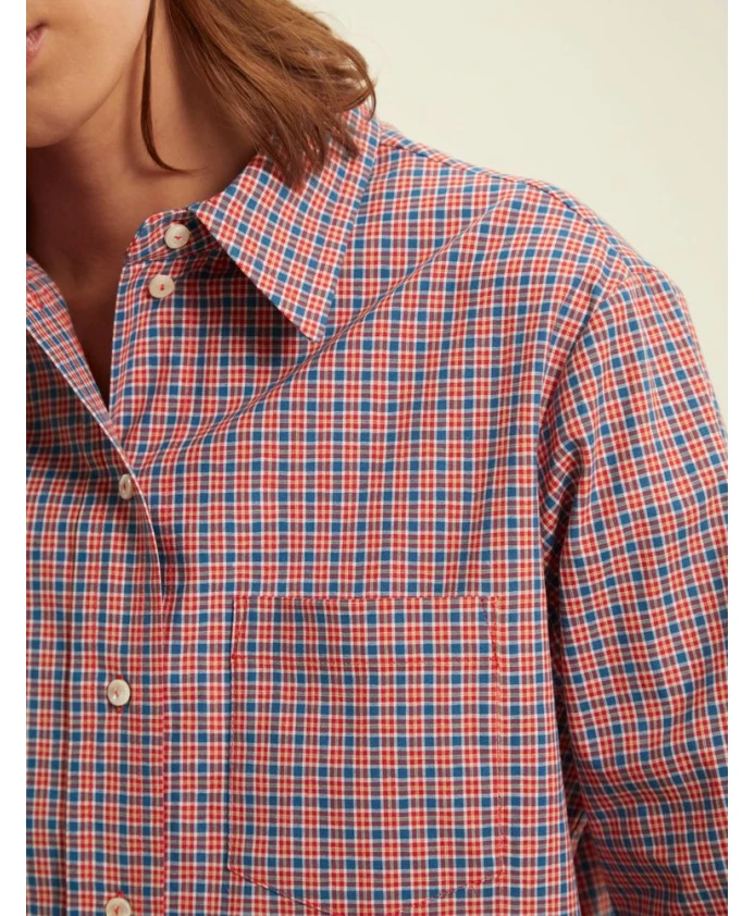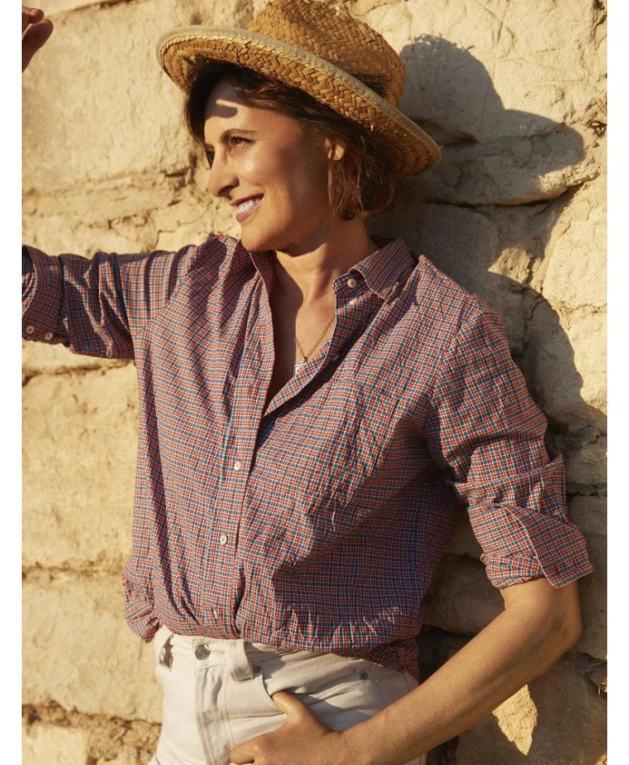 Обновите свой гардероб культовой рубашкой в клетку от Ines De La Fressange Paris. Эта вневременная модель имеет классический прямой крой, красно-синий узор в клетку и планку с пуговицами. Изготовленное из 100% хлопка, оно излучает парижскую элегантность. Разработано в Париже и сделано в Европе. Рост модели 1 м 81 см, размер 36.