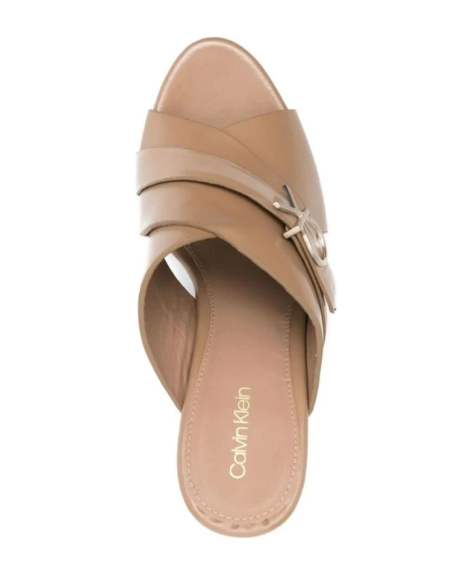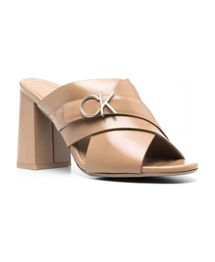 Стильные кожаные мюли на каблуке Calvin Klein, бежевый