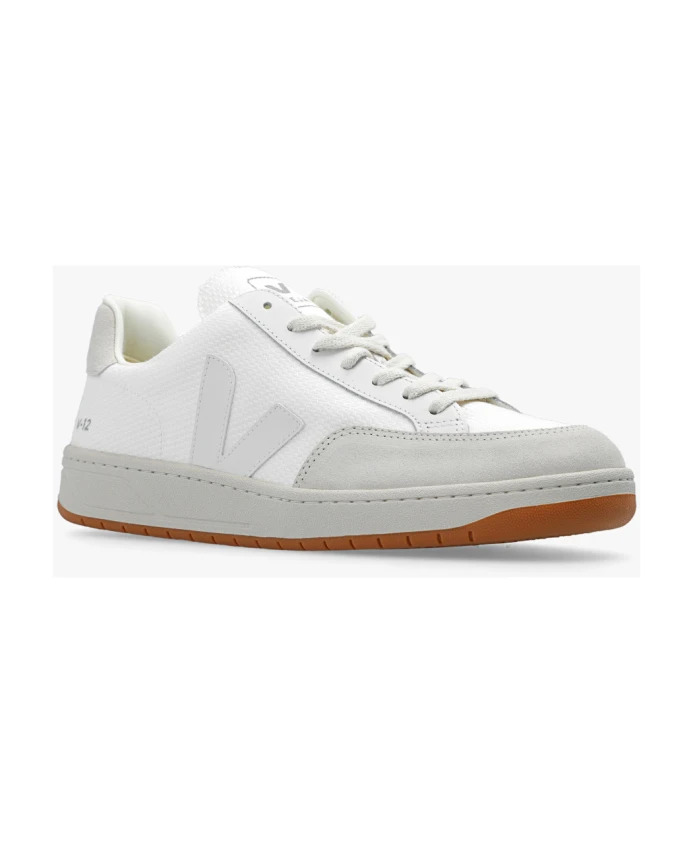 Бело-Серые кроссовки V-12 B-Mesh от Veja. Эта модель на шнуровке, изготовленная из сетки B-Mesh, полученной из переработанных бутылок и замши, имеет кремово-коричневую резиновую подошву из органических и переработанных материалов и дополнена принтом логотипа на язычке, экологически чистыми хлопковыми шнурками и белая нашивка с v-образным вырезом, украшенная резиной и рисовыми отходами. Сетчатая подкладка, изготовленная из переработанных материалов, обеспечивает лучшую устойчивость к трению. Стелька, полученная из органических и переработанных материалов, изготовлена из сахарного тростника, каучука Amazon, органического хлопка и переработанного пенопласта EVA. Высота подошвы: 2 см. Высота подошвы в самой высокой точке: 4 см.