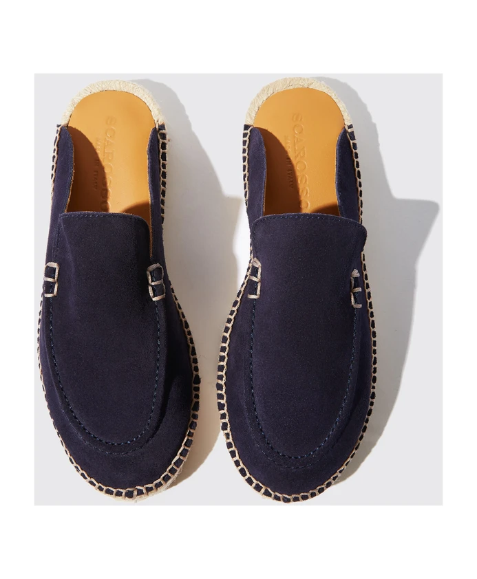 Встречайте лето с синими замшевыми эспадрильями Belen от Scarosso. Эти балетки ручной работы сочетают в себе шикарный верх без шнуровки и классическую подошву эспадрилий, идеально подходящие для повседневного летнего стиля. Верх из синей замши дополнен веревочной подошвой с резиновым протектором медового цвета и фирменной кожаной стелькой.