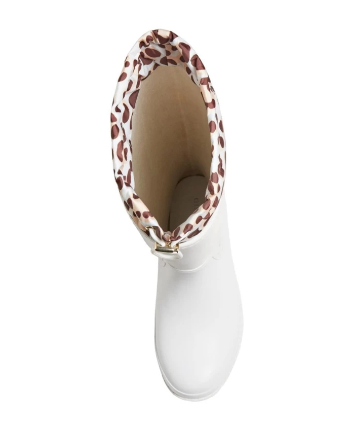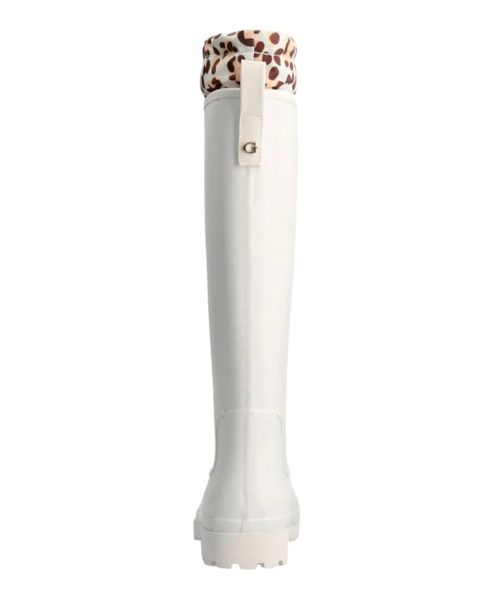 Оставайтесь стильными и сухими с этими повседневными белыми резиновыми сапогами для женщин от Guess. Эти ботинки, изготовленные из прочного резинового материала с резиновой подошвой толщиной 3 см, идеально подходят для дождливых дней.
