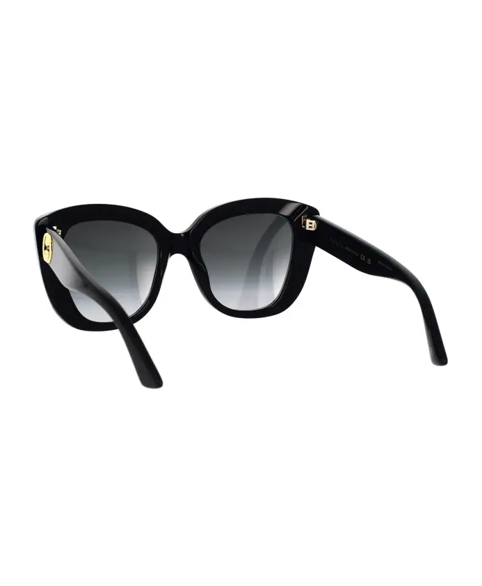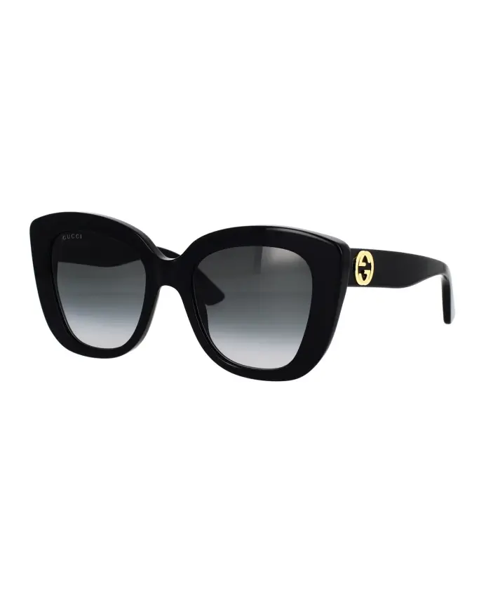 Подчеркните свой стиль с помощью этих черных женских солнцезащитных очков Gucci с серыми градиентными линзами. Наслаждайтесь 100% защитой от ультрафиолета и шикарной формой кошачьих глаз. Золотистый металлический логотип на заушниках добавляет роскоши. Изготовлен из высококачественного ацетата. Размеры: Ширина линзы: 52 мм; Бридж: 20 мм; Длина дужки: 140 мм.