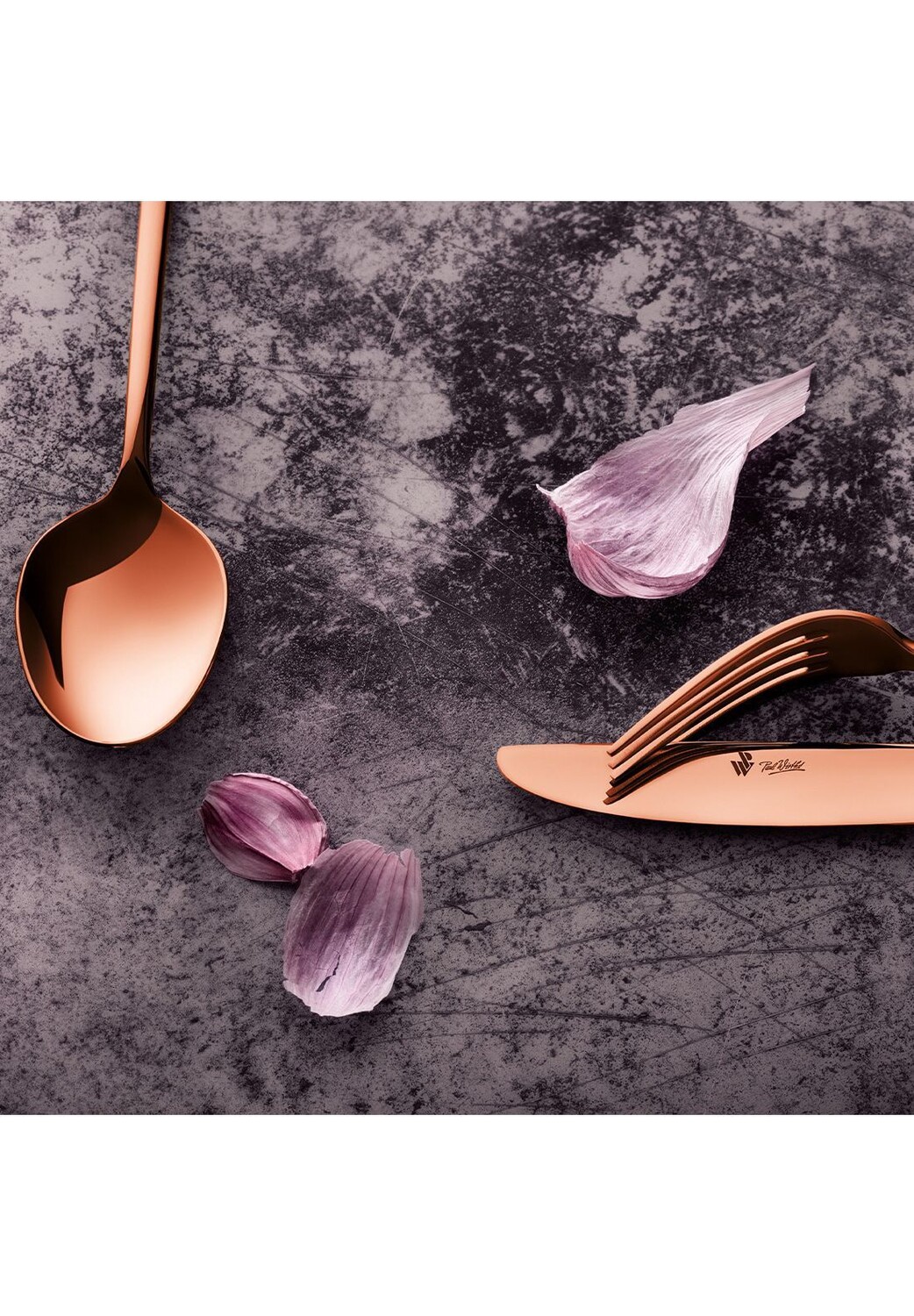 Нержавеющая сталь 18/10, полированная, медь с PVD-покрытием. Рекомендуется ручная стирка. Для 1 человека. В складной коробке.