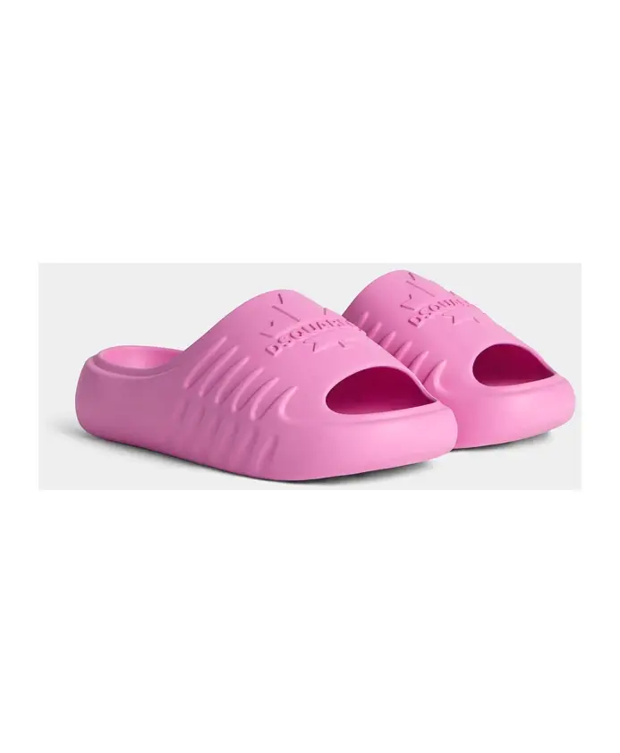 Подчеркните свой летний стиль с помощью этих женских шлепанцев Dsquared2. Тисненый логотип спереди, узор в виде кленового листа, открытый носок, модель без шнуровки, формованная стелька и плоская резиновая подошва. Изготовлен из 100% ЭВА.