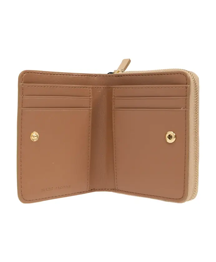 Бежевый кошелек от Marc Jacobs. Это изделие выполнено из зерненой кожи и имеет застежку-кнопку, тисненый логотип, накладные, передние и задние карманы, а также карман для монет на молнии, отделение для купюр, два накладных кармана и четыре внутренних отделения для карт. Высота: 10 см Ширина: 11 см