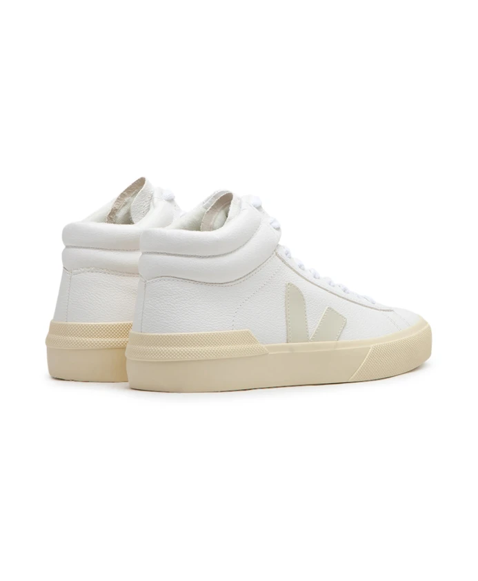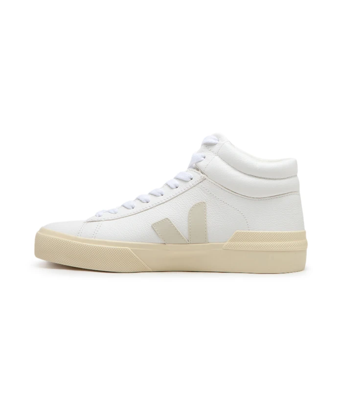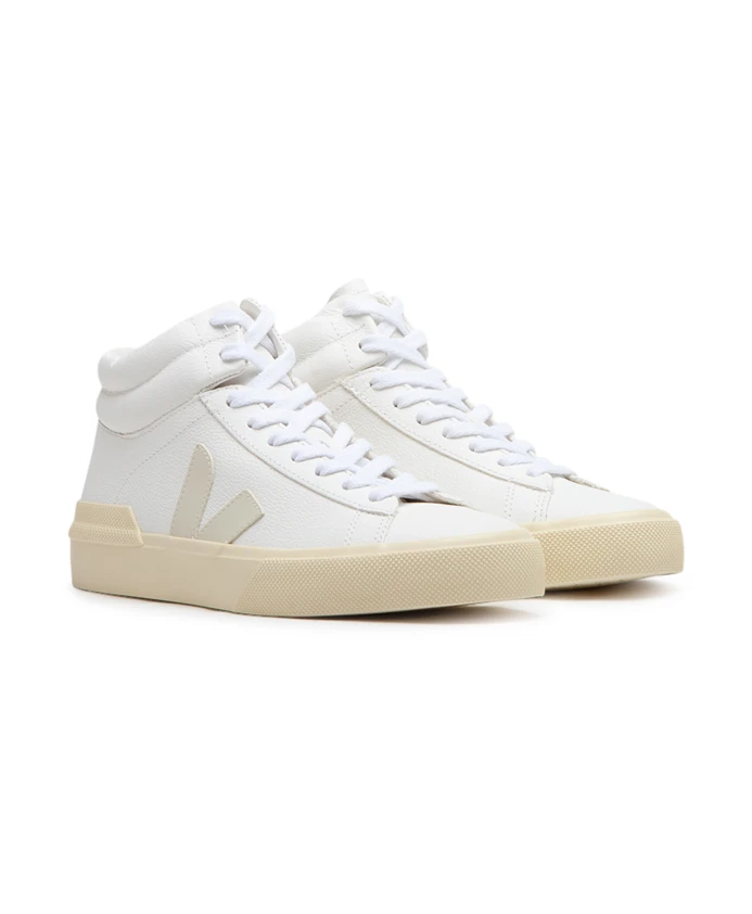 Представляем женские кроссовки Veja Mid Top. Эти кроссовки среднего силуэта выполнены из белой кожи с бежевым логотипом. Кожа ChromeFree, используемая в этой обуви, производится на фермах на юге Бразилии (Риу-Гранди-ду-Сул) и подвергается инновационному процессу дубления, в котором не используются ни хром, ни тяжелые металлы, ни опасные кислоты. Упрощение процесса дубления ограничивает использование химикатов и энергии. Верх выполнен из кожи без хрома, а вставки и логотип V — из амазонского каучука (26%) и рисовых отходов (22%). Стелька изготовлена из амазонского каучука (11%), сахарного тростника (42%), переработанного этиленвинилацетата (11%) и органического хлопка (12%). Подошва изготовлена из амазонской резины (31%), рисовых отходов (22%) и переработанной резины (12%). Внутренняя подкладка изготовлена из 100% переработанного полиэстера, а шнурки — из органического хлопка. Эти кроссовки производятся в Бразилии.