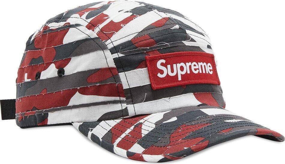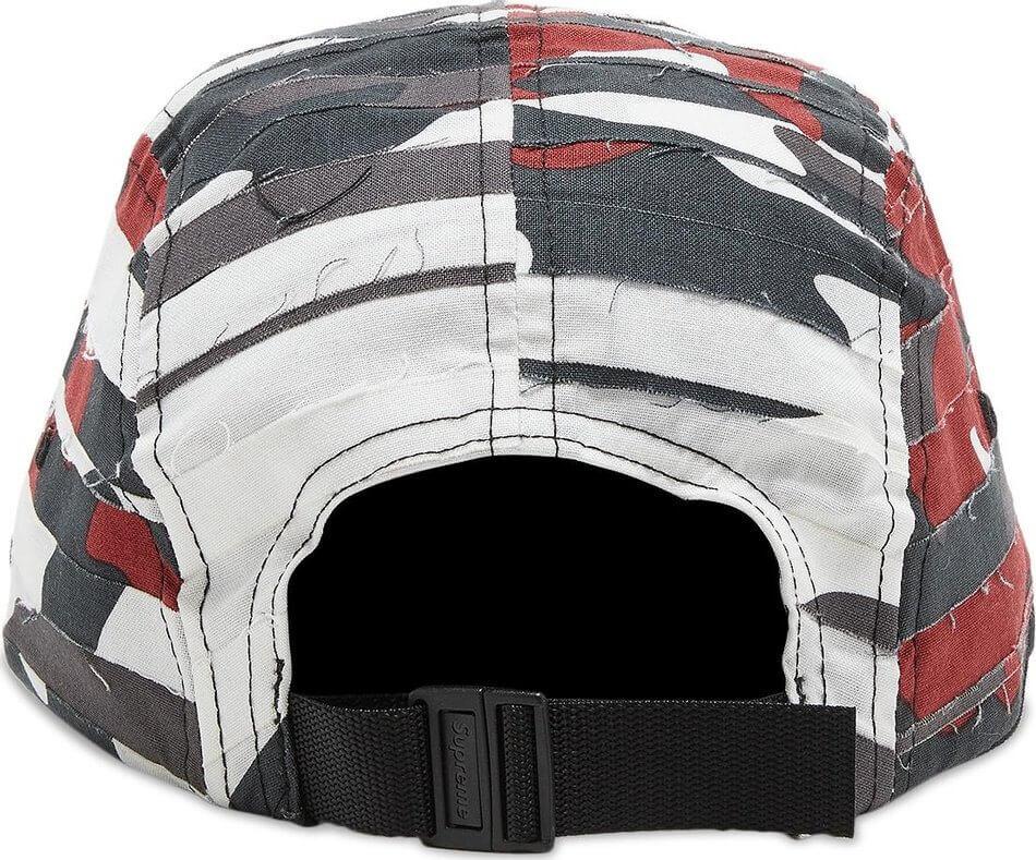 Многослойная кепка с камуфляжным принтом Supreme. Логотип бренда, закругленный козырек и регулируемый ремешок сзади.