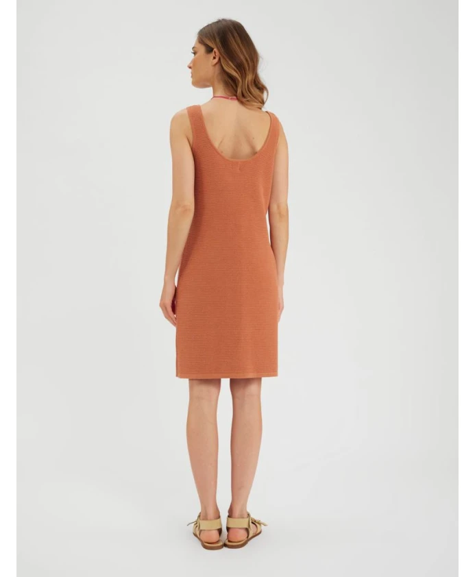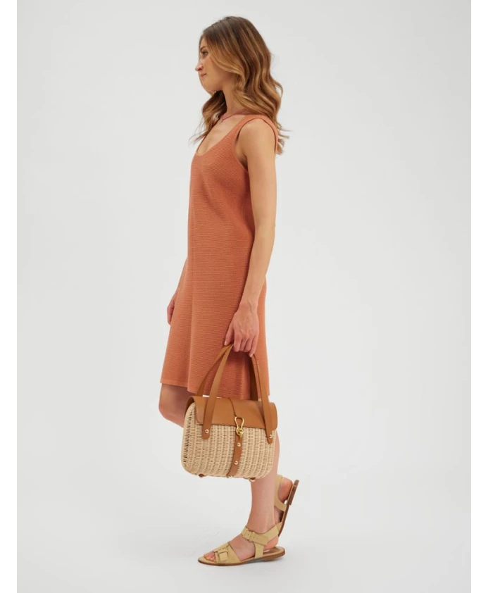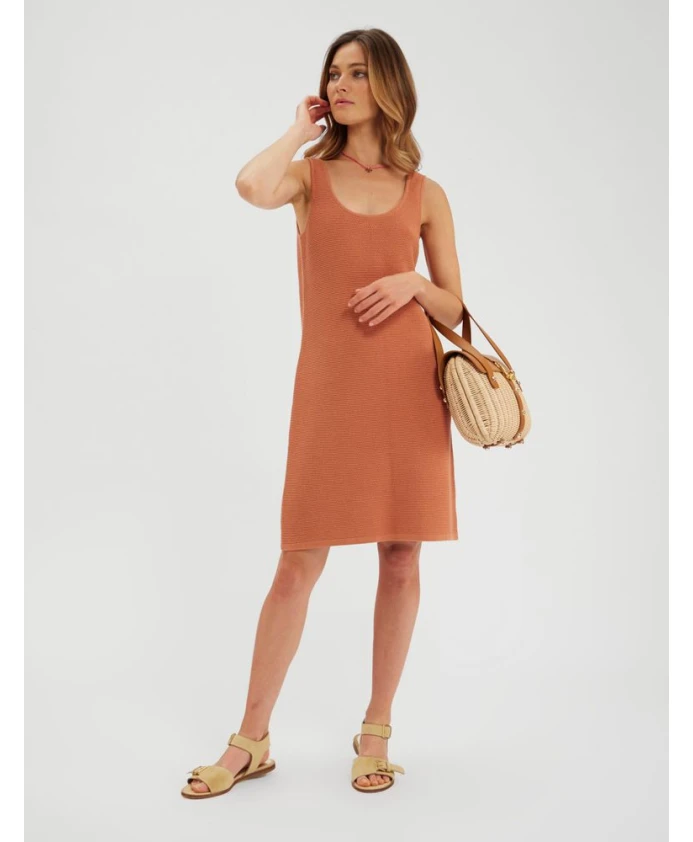 Платье Марта — трикотажное платье, идеально подходящее для лета и пляжа. Сплетенное специальным стежком, струящееся и легкое трикотажное изделие примечательно как сзади, так и спереди, с круглым вырезом и широкими бретелями, заканчивается выше колена. Его легко носить с кроссовками и небольшой сумкой, корзинкой или клатчем. Платье "Марта" Прямого кроя. Длина выше колена.