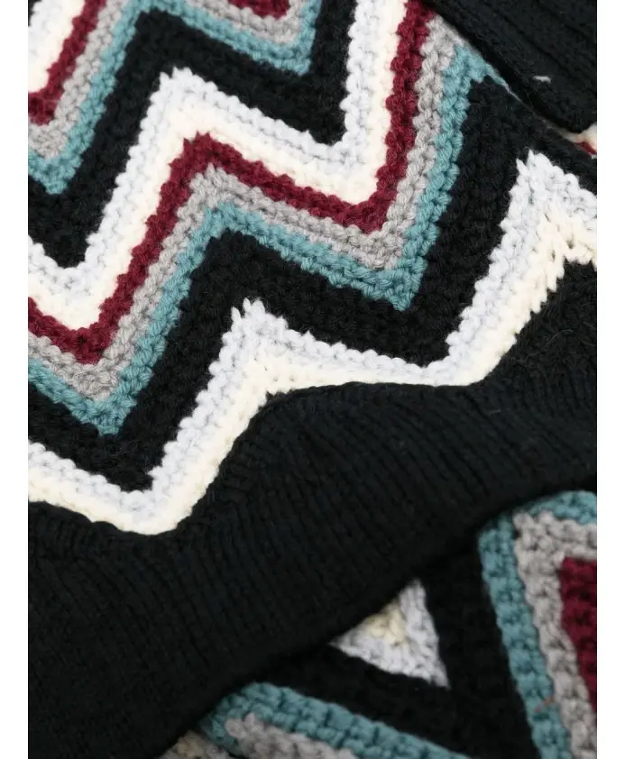 Сохраняйте тепло и стильность этой зимой с шерстяным шарфом шевронной вязки Missoni. Этот шарф черного и разноцветного дизайна изготовлен из высококачественной шерсти и имеет трикотажную конструкцию. Модель с запахом обеспечивает максимальное тепло и комфорт. Этот шарф длиной 180,0 см и шириной 25 см станет прекрасным дополнением любого зимнего гардероба.