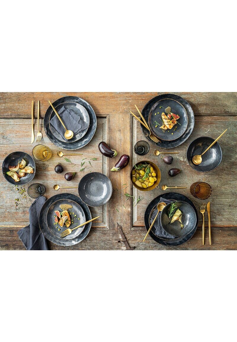Описание товара: МЕТАЛЛИЧЕСКИЙ ВИД Набор чаш Tombey от певца впечатляет цветовым сочетанием синего и серого рельефного зерна в сочетании с неравномерно мерцающей глазурью. Оба вместе создают великолепный металлический вид. Это означает, что вы можете быть уверены, что послужите стильно на любой случай, ведь вы нашли здесь подходящую услугу. ПОДАЧА СТИЛЬНАЯ Захватывающая игра цветов в сочетании с неравномерно мерцающей глазурью обеспечивает особенно хорошо накрытый обеденный стол в вашем доме, который оставит неизгладимое впечатление на ваших гостей. Внешний вид ручной работы также имеет красивый винтажный оттенок, который подчеркивает эффект привлекательной цветовой гаммы. КОМПЛЕКТ ПОСТАВКИ 4 чаши | ØxВ: 17,5x5,5 см | Емкость 450 мл | Вес: 421 г КАЧЕСТВО НАЧИНАЕТСЯ С ПРОИЗВОДСТВА При производстве мы сознательно использовали технологию, которая позволяет нам...