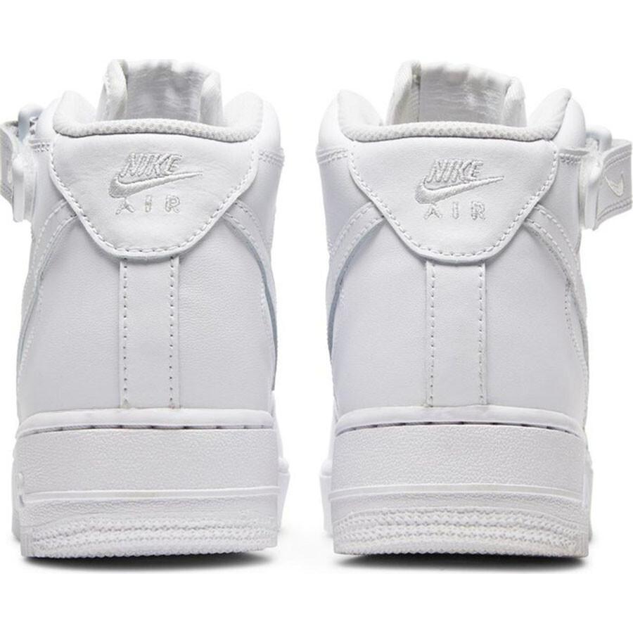 Высокие женские кроссовки Nike Wmns Air Force 1'07 Mid с фирменной символикой на язычке и заднике и фирменной металлической шильдой в основании шнуровки — актуальная интерпретация легендарной модели Air Force. Стелька из легкого материала и система амортизации Nike Air.
