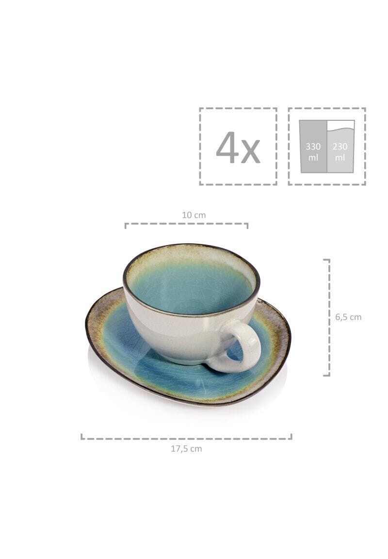 Описание товара: Поразительно КРАСИВЫЙ ДИЗАЙН Основной цвет тарелок – светлый оттенок серого, края – темно-коричневые, что создает особую игру красок, которая оставит ни с чем не сравнимое впечатление у ваших гостей. Внутренняя часть чашки кораллово-зеленая. ВИНТАЖНЫЙ ВИД, КОТОРЫЙ МОЖЕТ ПОТРЯСТЬСЯ Благодаря своему винтажному виду обеденный сервиз Capri выделяется и притягивает взгляды. Этот набор был вдохновлен звездной кухней, которую вы наконец-то можете привезти домой по абсолютно доступной цене. КОМПЛЕКТ ПОСТАВКИ: 4 блюдца | ØxВ: 17,5x6,5 см | Вес: 270 г, 4 чашки | ØxВ: 10x6,5 см | Емкость 300мл | Вес: 230 г. 4 боковых пластины | ØxВ: 20,3x2 см | Вес: 360 г