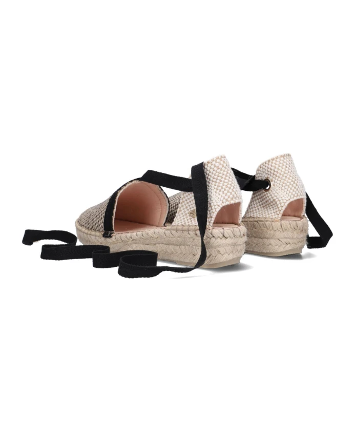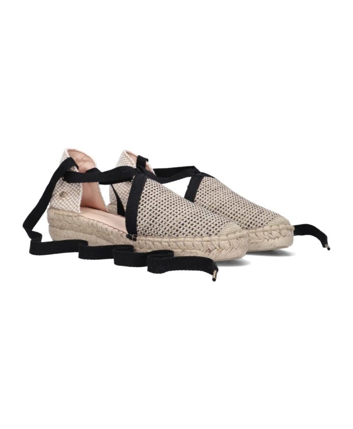 Встречайте лето с этими стильными черными эспадрильями 152010259 от Fred de la Bretoniere. Эти туфли с плетеной джутовой подошвой и низкой танкеткой создают чудесный летний и женственный образ. Они изготовлены из плетеной веревки с черными и золотыми акцентами, имеют кожаную подкладку и удобную мягкую стельку. Пятка украшена золотистой фирменной булавкой и длинной черной шнуровкой, которую можно элегантно завязать вокруг лодыжки, а носок украшен фирменной деталью из плетеной веревки. Подошва находится на 2 сантиметра ниже передней части стопы и постепенно поднимается до высоты каблука 4 сантиметра. Резиновая подошва с тонким нескользящим профилем обеспечивает превосходное сцепление и идеально подходит для длительных летних прогулок. Комбинируйте их с бесчисленными нарядами и пусть светит солнце!