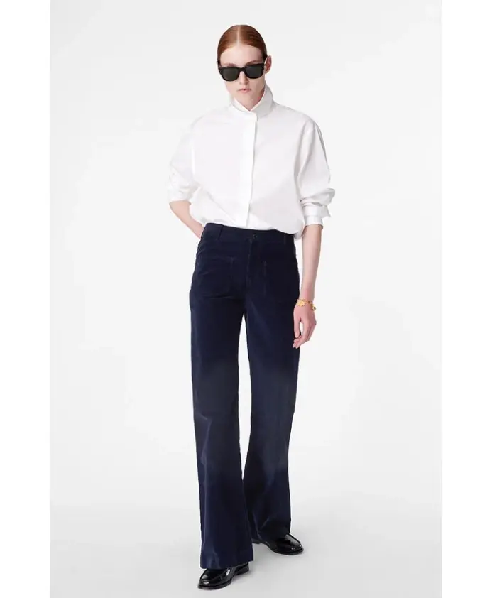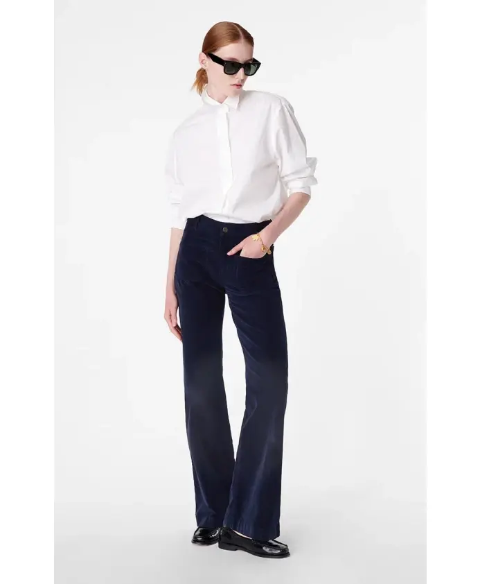 Улучшите свой образ с помощью Dompay — вельветовых расклешенных брюк, культового произведения Ванессы Бруно. Эти брюки Bootcut имеют высокую талию с петлями для ремня, два передних и задних накладных кармана, а также застежку на молнию и пуговицы. Изготовлено из 98,5% хлопка и 1,5% эластана, подкладка из 100% хлопка.
