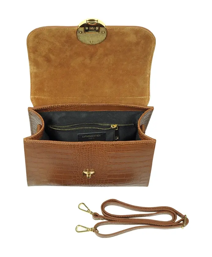 Добавьте нотку винтажного гламура в свой образ с помощью сумки-сэтчел Le Parmentier Bombo из кожи с тиснением под крокодила и верхней ручкой. Эта изысканная сумка, изготовленная с безупречным мастерством, имеет клапан на кнопке и фурнитуру геометрической формы. Кожа с тиснением под крокодила добавляет роскоши, а верхняя ручка и съемный ремешок обеспечивают универсальность. Внутренний карман на молнии, защитные ножки и золотистая фурнитура делают эту сумку стильной и функциональной. Сделано вручную в Италии, его размеры 25х18х10см.