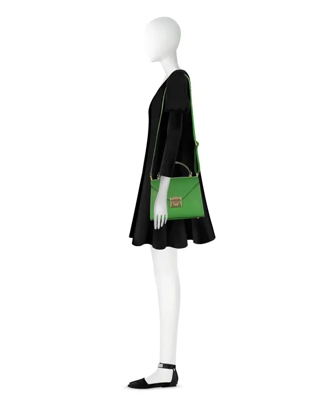 Представляем кожаную сумку-саквояж Peggy с верхней ручкой от Le Parmentier. Эта эксклюзивная сумка через плечо изготовлена из гладкой натуральной итальянской телячьей кожи, обеспечивающей долговечность и изысканность. Их структурированный силуэт излучает очарование сезон за сезоном, что делает их вечным дополнением вашего гардероба. Сумка оснащена откидной крышкой с защелкой, удобной ручкой для переноски и съемным плечевым ремнем для универсальных вариантов переноски. Благодаря внутреннему карману, строчке в тон и золотистой фурнитуре эта сумка функциональна и стильна. Сделано в Италии, оно демонстрирует высочайшее мастерство. Размеры: 25см х 18см х 10см.