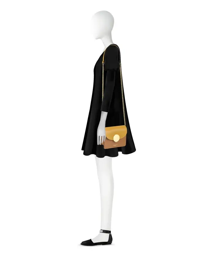 Представляем новую мини-сумку через плечо Le Parmentier Ondina Color Block, стильный аксессуар для современной женщины. Эта сумка, изготовленная из натуральной итальянской телячьей кожи, имеет тонкий силуэт и компактный размер, идеально подходит для ношения с собой мелких предметов первой необходимости днем или ночью. Откидной верх с круглой застежкой-кнопкой, цепочка и кожаный ремень на плечо, внутренний карман, отстрочка в тон и золотистая фурнитура. Эта сумка, изготовленная вручную в Италии, является настоящим свидетельством качества и стиля. Размеры: 17см х 13см х 8см.