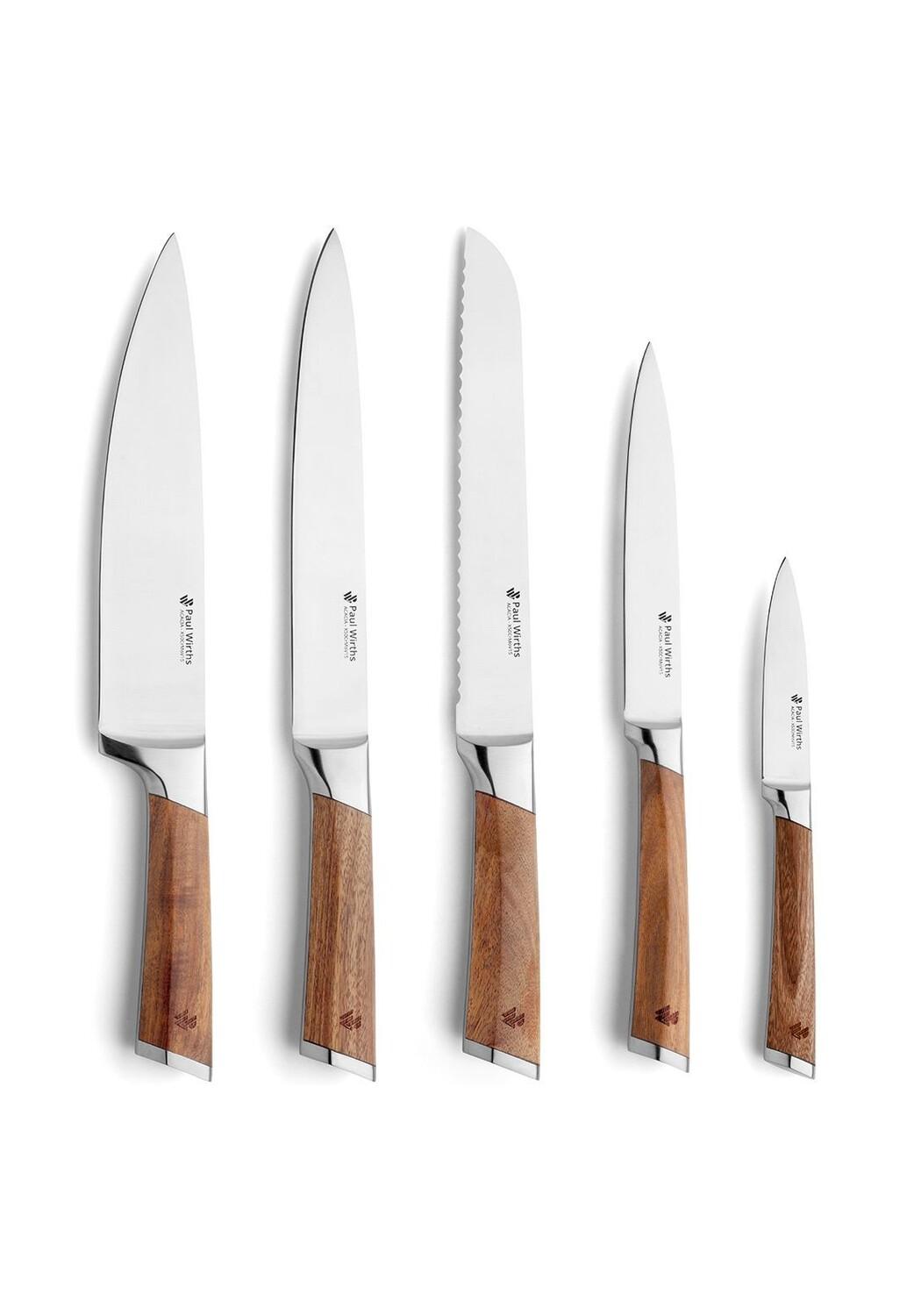 Блок ножей 5 предметов: 1 нож для очистки овощей, 1 универсальный нож, 1 разделочный нож, 1 кулинарный нож, 1 нож для хлеба
