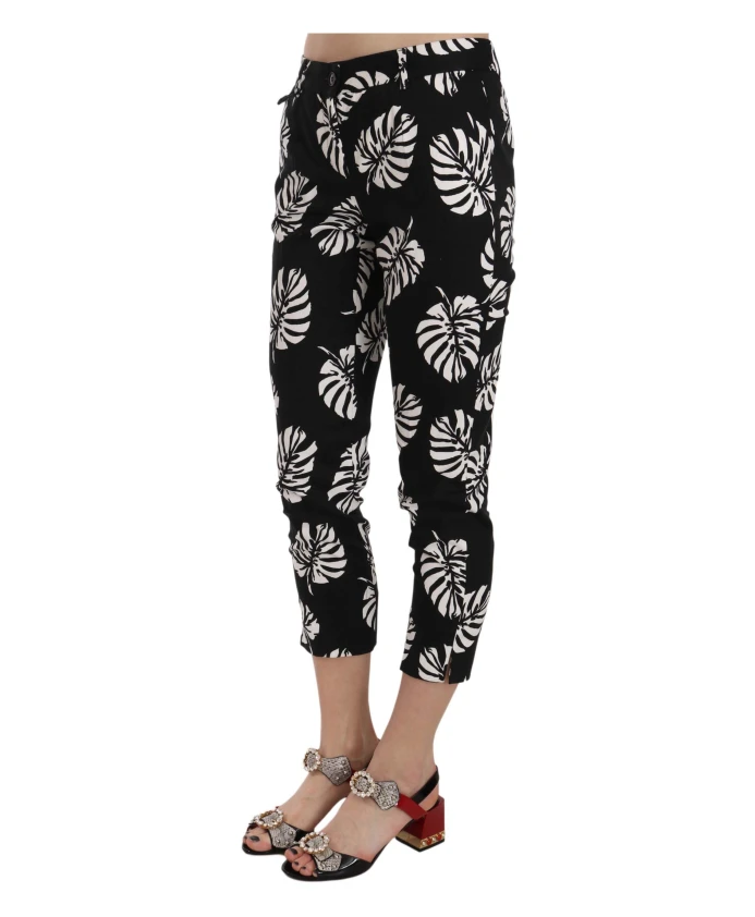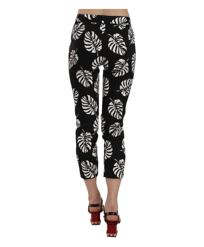 Обновите свой гардероб этими потрясающими укороченными брюками Dolce Gabbana. Эти черные брюки, изготовленные из смеси 97 % хлопка и 3 % эластана, украшены стильным узором в виде пальмовых листьев. Узкий дизайн капри добавляет элегантности, а застежка-молния обеспечивает надежную посадку. Эти брюки, украшенные логотипами и изготовленные в Италии, незаменимы для каждой следящей за модой женщины.