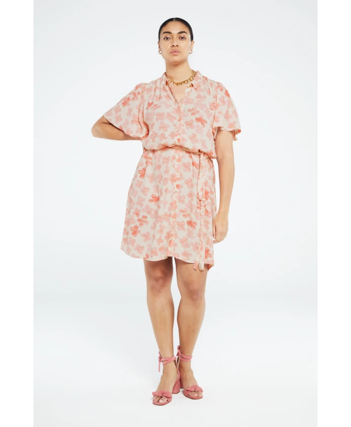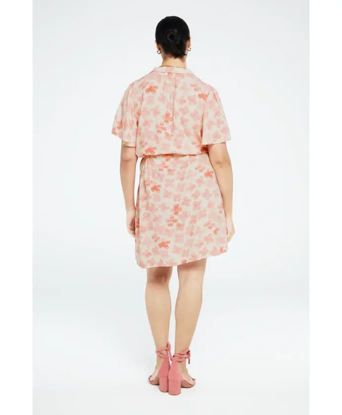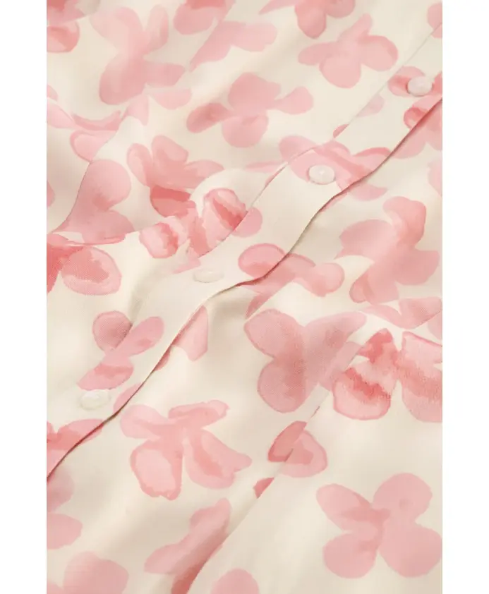 Короткое платье с классическим воротником, плетеным поясом и застежкой на пуговицы во всю длину. Платье Girlfriend Butterfly имеет короткие рукава-бабочки и модный принт Treboli Pink по всей поверхности. Эта модель изготовлена из 54% вискозы LENZING ECOVERO: воздушной, эластичной и эластичной. LENZING и ECOVERO являются торговыми марками Lenzing AG.