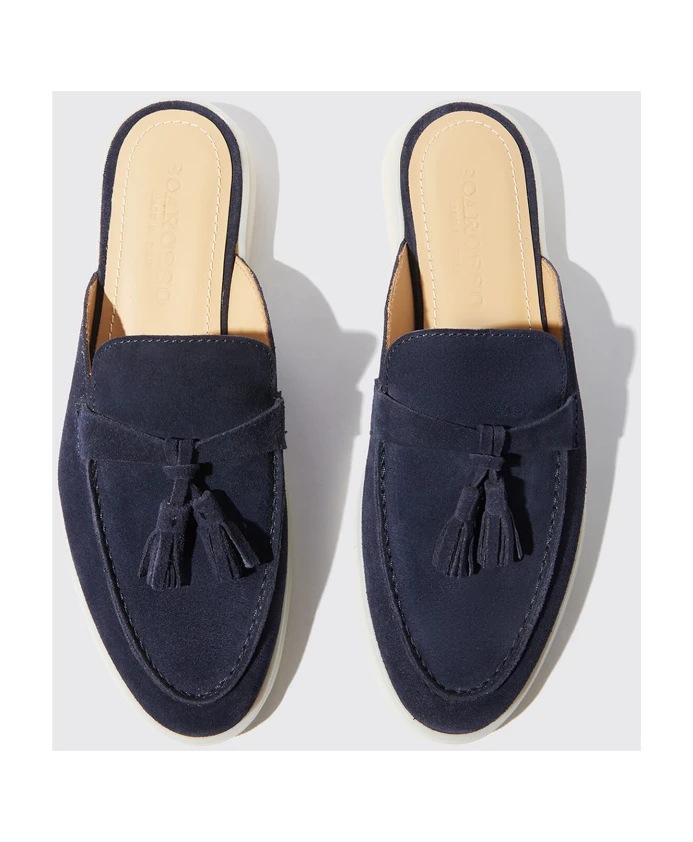 Представляем мюли Scarosso Lucrezia Blu Scamosciata, изготовленные вручную в Италии опытными мастерами. Эти удобные и легкие балетки в стиле casual-chic идеально подходят для весенне-летнего сезона. Высококачественная гибкая резиновая подошва и облегающий верх делают их незаменимыми для каждой модной женщины. Низкая удлиненная форма и синий замшевый материал придадут элегантность любому наряду. Высота каблука: 2,2 см.