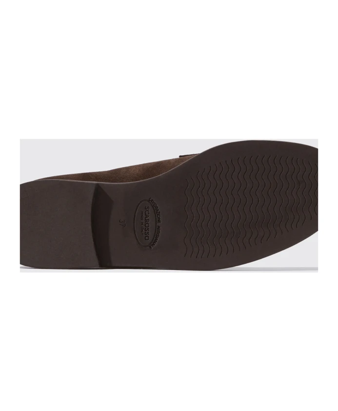 Обновите свою коллекцию обуви лоферами Monica Scamosciata от Scarosso. Эти пенни-лоферы, изготовленные вручную в Италии нашими опытными мастерами, изготовлены из темно-коричневой замши и имеют подкладку из телячьей кожи, окрашенной в натуральный цвет. Легкая и практичная резиновая подошва обеспечивает комфорт и долговечность этих стильных балеток.