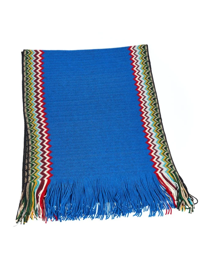 Подчеркните свой зимний стиль с помощью элегантного шарфа Missoni с геометрическим узором и бахромой. Этот универсальный аксессуар с ярким геометрическим узором и игривой бахромой добавит элегантности и цвета любому наряду. Этот шарф красивого синего цвета, изготовленный в Италии из роскошной смеси 50% шерсти и 50% акрила, идеально подходит для холодных дней и является стильным дополнением к любому гардеробу. Подходит для мужчин.