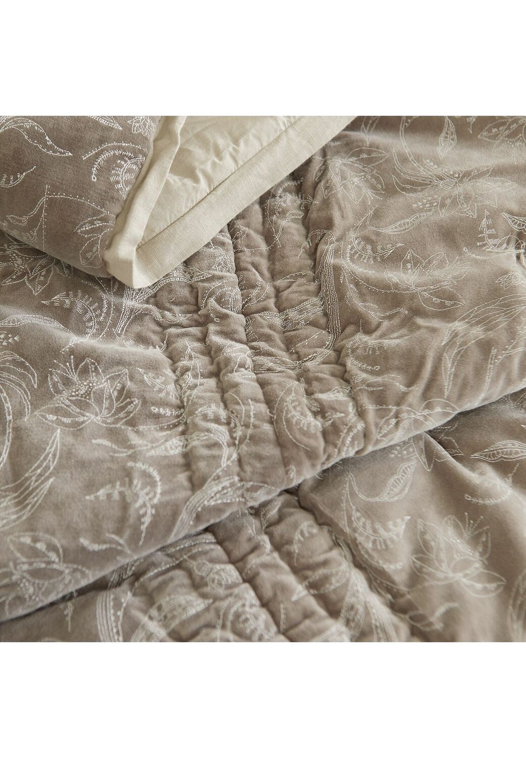 Описание товара: Из элегантного хлопкового бархата спереди и из чистого хлопка сзади. Цветочный принт в элегантных белых тонах. Мелкие детали: кайма по всему периметру и строчка в тон сверху. Одеяло – это больше, чем просто элегантное покрывало для вашей кровати. Одеяло – удивительный универсальный аксессуар для дома, который дарит уют, легкое тепло и комфорт днем, вечером и ночью. Передняя часть этого одеяла выполнена из нежно мерцающего хлопкового бархата с нежным цветочным принтом, однотонная спинка выполнена из мягкого чистого хлопка. Поэтому он идеально подходит для того, чтобы уютно устроиться и сделать ваш досуг на диване или в постели еще более приятным. Как это характерно для классического одеяла, оно также имеет легкий наполнитель. который держит форму с помощью тонкой строчки. Бордюр из элегантной смеси льна и хлопка идеально обрамляет все края.