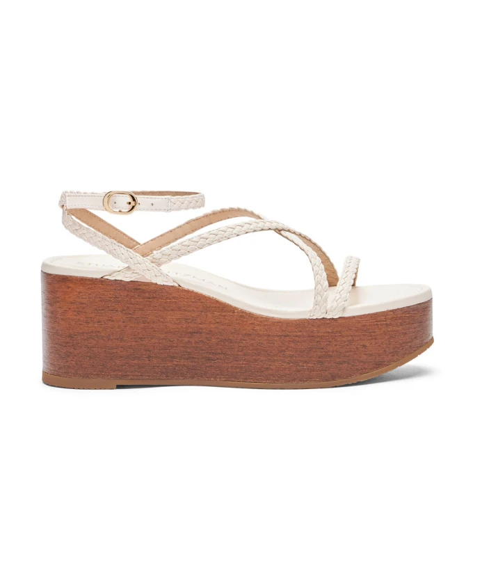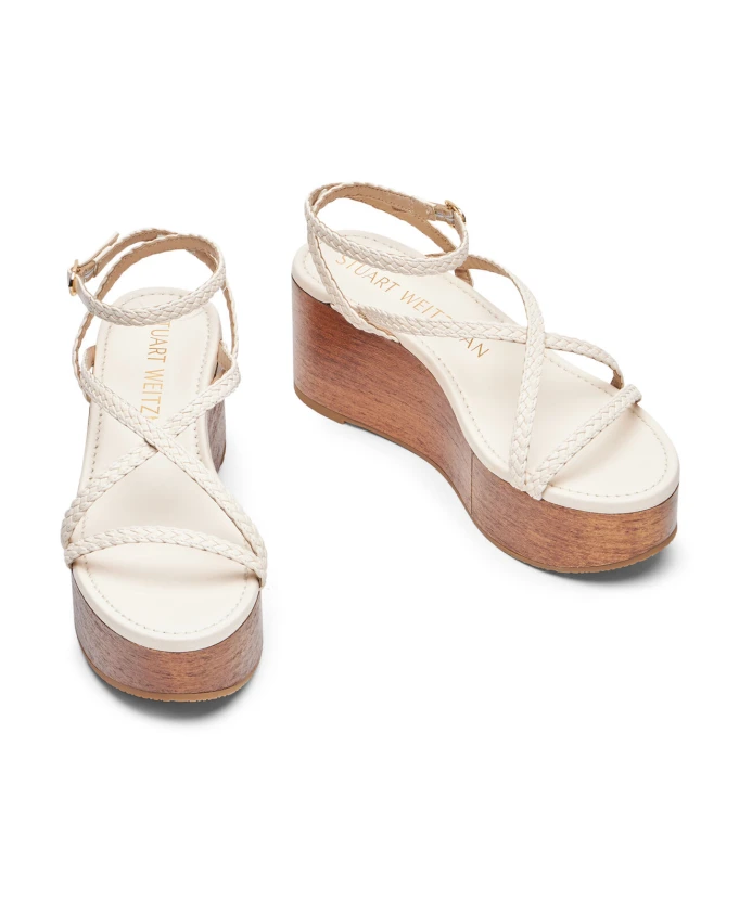 Обновите свой летний гардероб с помощью обуви Stuart Weitzman WOVETTE WEDGE. Роскошные тканые ремешки из металлизированной ткани на деревянной платформе шириной 60 мм придают модели стиль и комфорт. Изготовлено вручную в Испании для создания современного плоского вида.