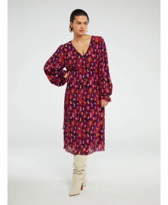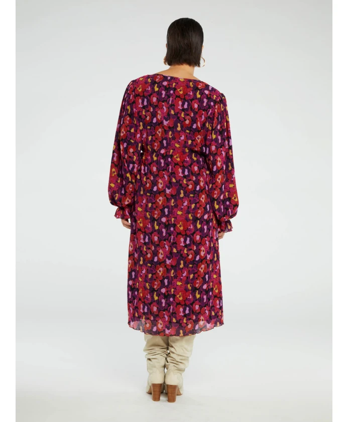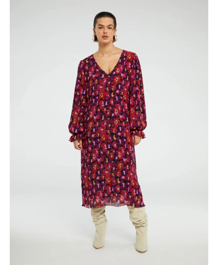 Мягкое платье с длинными рукавами и рюшами. Платье Pauline с длинными рукавами имеет V-образный вырез и принт Cherry Cat Deluxe по всей поверхности.
