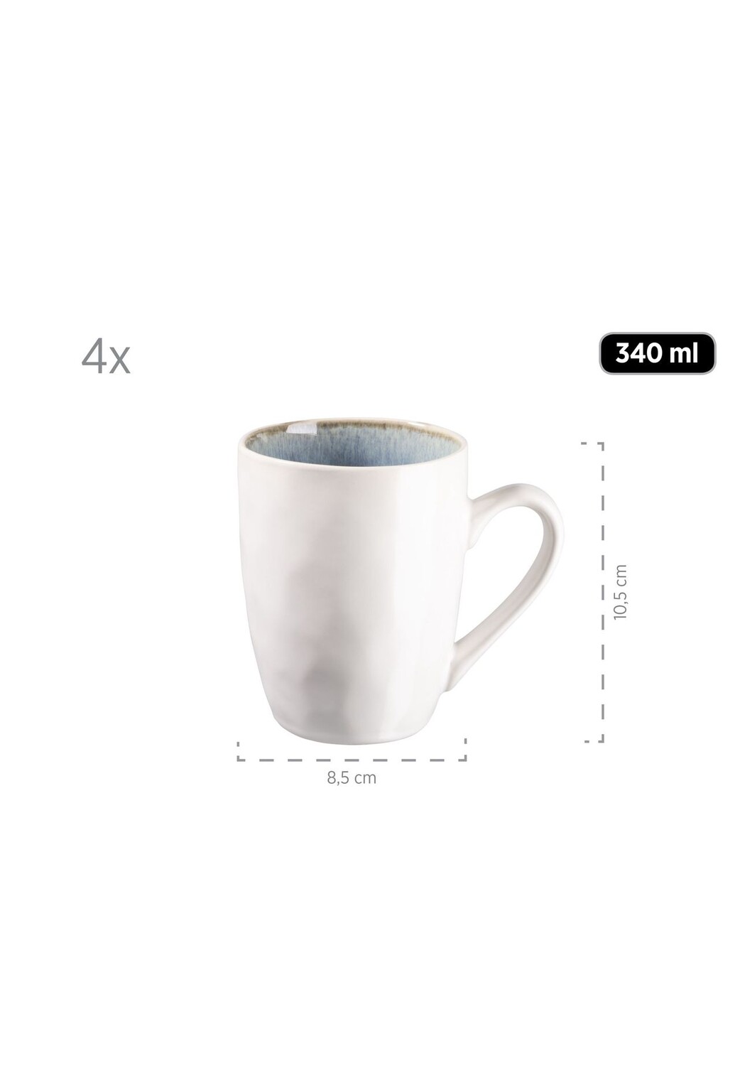 Описание товара: Традиционный австрийский бренд MÄSER развивает стильную скандинавскую тенденцию создания уюта в современной винтажной коллекции Frozen и показывает, насколько очаровательной может быть керамическая посуда. Неправильная форма в чеканном стиле создает особенный вид и излучает тепло и уют в вашем доме. Привлекает внимание матовая белая внешняя поверхность и глазурь, расписанная вручную внутри, что делает каждое изделие уникальным. Этот набор поставляется в надежной транспортировочной упаковке, изготовленной из экологически чистых материалов. Чтобы обеспечить объективную сопоставимость, наши объемы наполнения всегда относятся к начинке, наполненной до краев. Обратите внимание: эта коллекция глазуруется вручную, что может привести к минимальным дефектам глазури, небольшим включениям и небольшим изменениям цвета. В комплект кофейных кружек входят: 4 кофейные кружки по 340 мл.