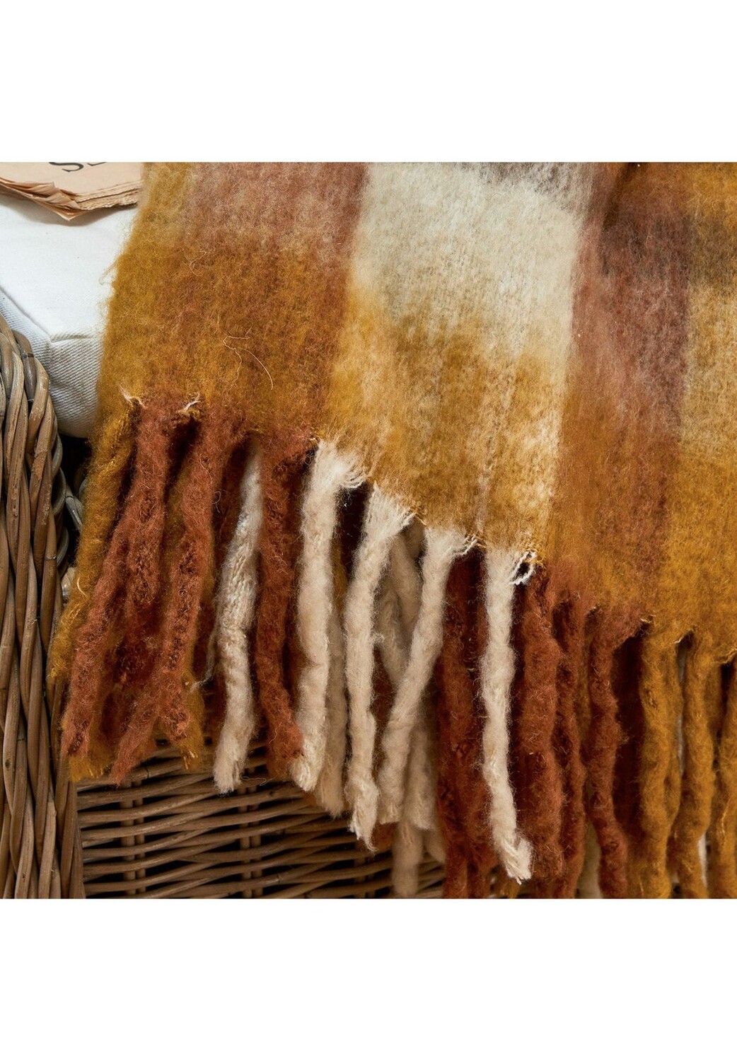 Описание товара: шикарная клетчатая вещь в теплых осенних тонах. Изготовлен из высококачественной смесовой шерсти, приятный на ощупь, мягкий и комфортно теплый. С декоративной бахромой по узким краям. Изящные аксессуары для дома, такие как этот плед, сделают холодные осенние дни чудесно уютными. Щедрый клетчатый узор придает ощущение деревенского шика и выглядит фантастически в теплых модных тонах. Декоративная фитильная бахрома по узким краям стильно завершает одеяло. Универсальный живой акцент, который приглашает вас укутаться и уютно расположиться и превращает уютные часы на диване или в любимом кресле в чистое удовольствие. Плед особенно хорошо гармонирует с натуральными материалами, такими как дерево или ротанг.