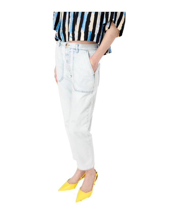 Улучшите свой джинсовый образ с помощью этих прямых джинсов PINKO светло-снежной расцветки. Талия стандартной высоты, петли для ремня, большие передние карманы и задние накладные карманы. Модель прямого кроя немного свободнее в верхней части для более удобной посадки. Застегивается на молнию и металлическую кнопку. Цвет: лунный. Материал: 96% хлопок, 4% эластомультиэстер. Рекомендации по уходу: Машинная стирка в холодной воде, не отбеливать, сушить в стиральной машине при низкой температуре, гладить при средней температуре, сухая чистка, сушить в подвешенном состоянии, беречь от тепла и света.
