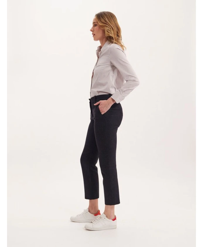Брюки Одри – неотъемлемая часть классического парижского гардероба. Эти незаменимые брюки облегающего кроя и длины 7/8 универсальны, удобны в ношении и подходят для всех размеров. В этом сезоне брюки Audrey доступны из красивой черно-синей ткани с узором «гусиные лапки», что придает им вневременную и неподвластную времени изысканность. Прямые брюки Audrey Прямого кроя, длина 7-8. Застежка-молния на пуговицу. Итальянские передние карманы. Задние карманы на пуговицах и окантовке. Состав: 60% шерсть - 40% полиэстер. Рост модели 1м81, размер 36. Разработано в Париже. Сделано в Европе Артикул: 11p003wo046.