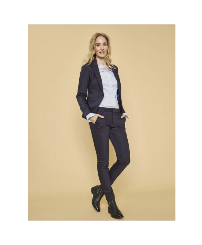 Обновите свой гардероб темно-синими женскими брюками Mos Mosh «Blake Night». Эти брюки чинос имеют устойчивую к складкам отделку и ребристые манжеты. Эти брюки, изготовленные из смеси органического хлопка, хлопка, полиамида и эластана, обеспечивают комфорт и долговечность. Подкладка изготовлена из полиэстера и эластана. Делайте покупки прямо сейчас и прокачайте свое чувство моды!
