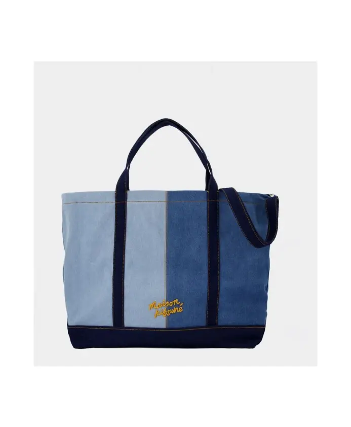 Добавьте элегантности в свой повседневный образ с помощью этой большой сумки Maison Kitsuné цвета стираного индиго. Эта универсальная сумка, изготовленная из прочной смеси хлопка, оснащена двумя верхними ручками и регулируемым ремешком через плечо, что позволяет использовать ее в различных стилях. Благодаря двум отделениям и двум карманам на молнии он идеально подходит для хранения необходимых вещей в дороге.