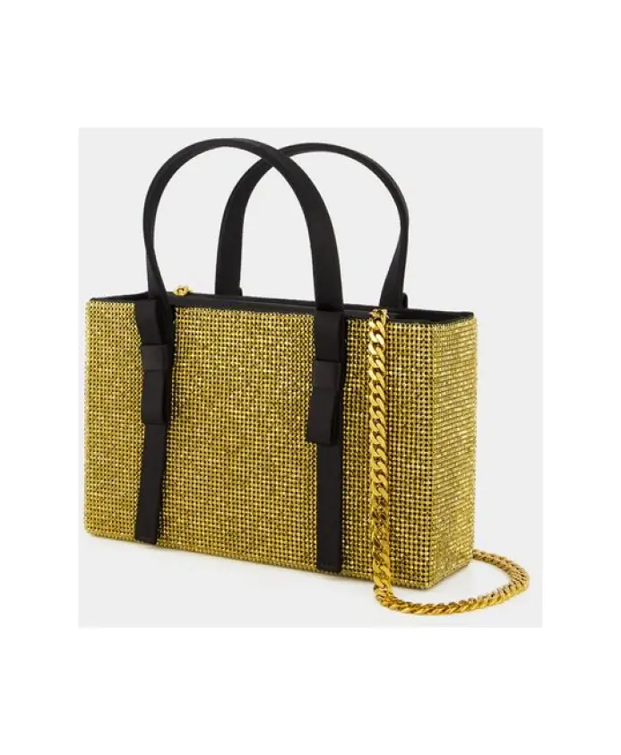 Представляем сумку Kara Tote Bag, стильный аксессуар для современной женщины. Эта сумка, изготовленная из металла и стразов, излучает элегантность и изысканность. Две верхние ручки длиной 25 см позволяют легко носить сумку в руке. Хлопковая подкладка придает внутренней части сумки нотку роскоши. Доступная в двух потрясающих цветовых вариантах — золотом/золотом и черном — эта сумка-тоут станет универсальным дополнением к любому наряду. Магнитная застежка сверху обеспечивает сохранность ваших вещей. Эта сумка с деталями из сетчатой ткани является настоящим модным трендом. Обратите внимание, что в этой модели нет внутренних карманов.