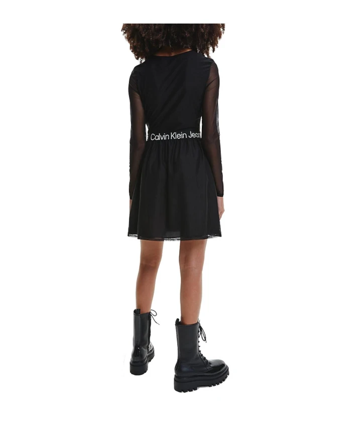 Платье из эластичной сетки с логотипом Calvin Klein, черный