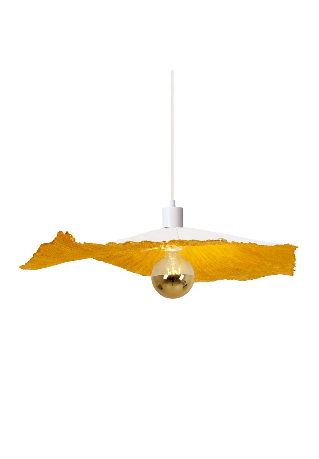Бумажный подвесной светильник Crazy Paper имеет общую высоту вместе с маятником 80см. Зонт имеет диаметр 56 см и составляет ок. Высота 10 см. Он сделан из бумаги и металла, черный снаружи и золотой внутри.