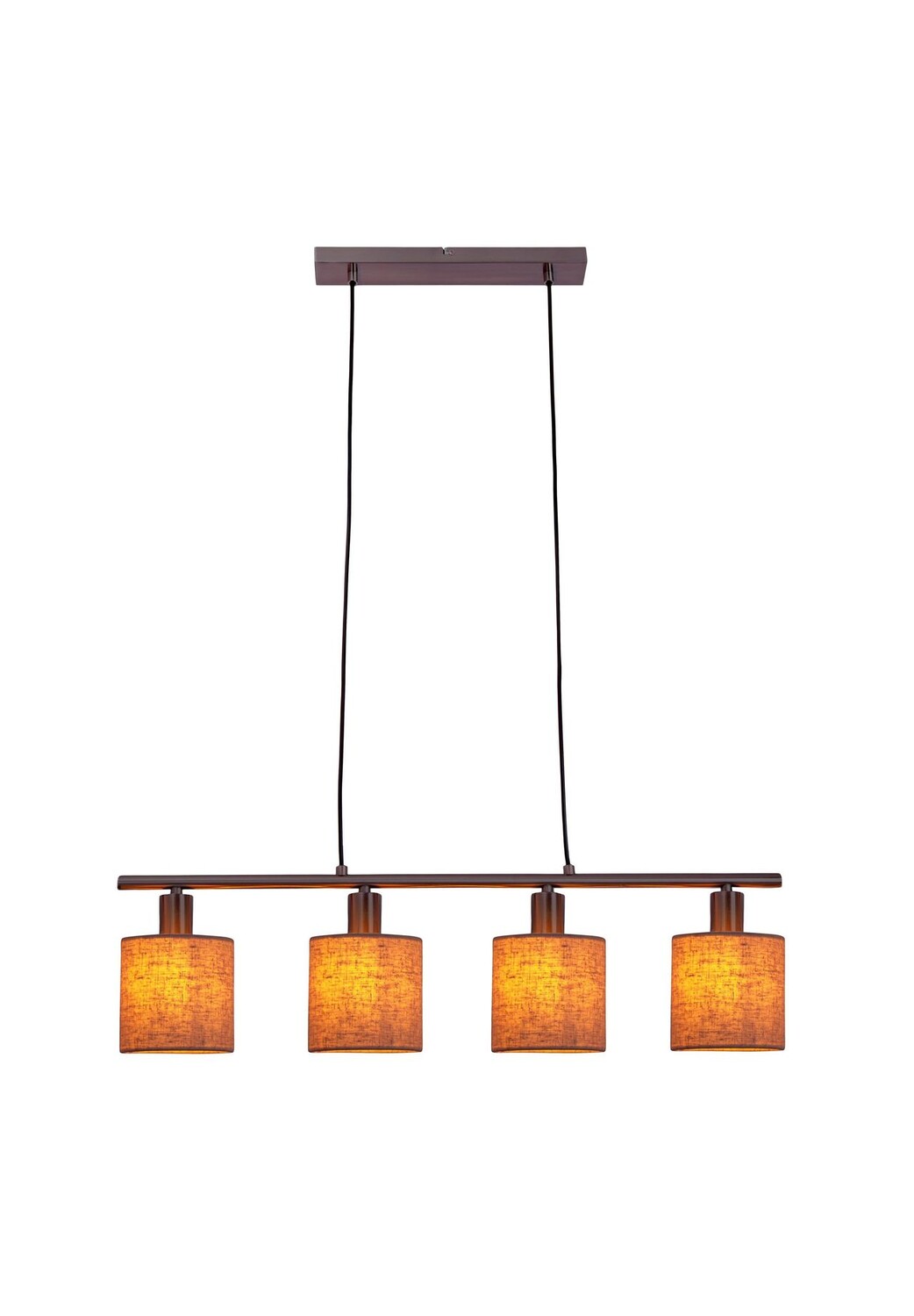 Макс. 4x E14. 40 Вт искл. Источник света 220–240 В~ 50 Гц IP20/SKI Всего: длина: 72,4 см; б: 12см; высота: 15 см, общая высота: 140 см, оттенок: г: 12 см; высота: 11 см, капюшон: длина: 34,5 см; б: 4,5 см; час: 2 5см Длина маятника: 120см Материал: сталь, текстиль Абажур: металл: 70% / ТК: 8% / ПВХ: 22% Цвет: коричневый; внутри: золото; сатинированный никель