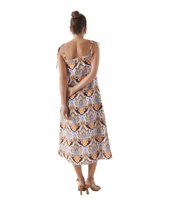 Обновите свой летний гардероб этим элегантным и свежим платьем миди Salsa. Изготовленная из высококачественного льна, она легкая и дышащая для жарких дней. Женственный и современный рисунок добавляет стильности, а универсальный крой подходит для разных случаев. Сочетайте его с обувью на каблуке или кроссовками, чтобы создать повседневный или более формальный образ.