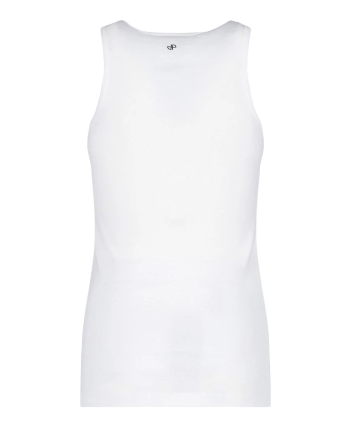 Ищете стильный и удобный топ без рукавов? Взгляните на эту белую приталенную хлопковую майку от Patou! Этот топ с буквенным логотипом спереди и монограммой сзади идеально подойдет любой модной женщине.