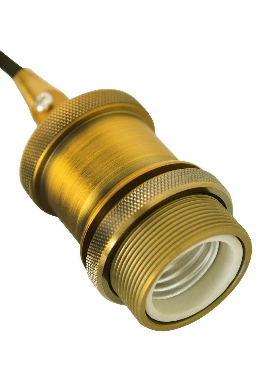 Искл. 1x E27 макс. 40 Вт 220–240 В~ / 50 Гц Г: прибл. 5 см / В: прибл. 8,5 см Длина кабеля IP20 / SKII прибл.: 150 см / 2*0,75 мм² / потолочная розетка VDE: прибл. . 10 см / Высота: около 2,5 см Материал: металл/текстиль Цвет: латунь Дополнительные характеристики: Подвес с винтовым кольцом Металлический навес Текстильный кабель