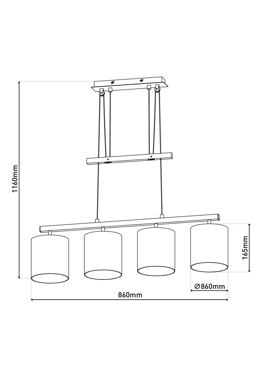 Макс. 4x E27. 40 Вт искл. Источник света 230В~ 50Гц длина: 86см; высота: 116 см на оттенок: г: 15 см; высота: 16,5 см Материал: металл (сталь), текстиль Абажур: ткань TC с пластиковым покрытием (60 % полиэстер / 40 % хлопок) Цвет: серый, белый