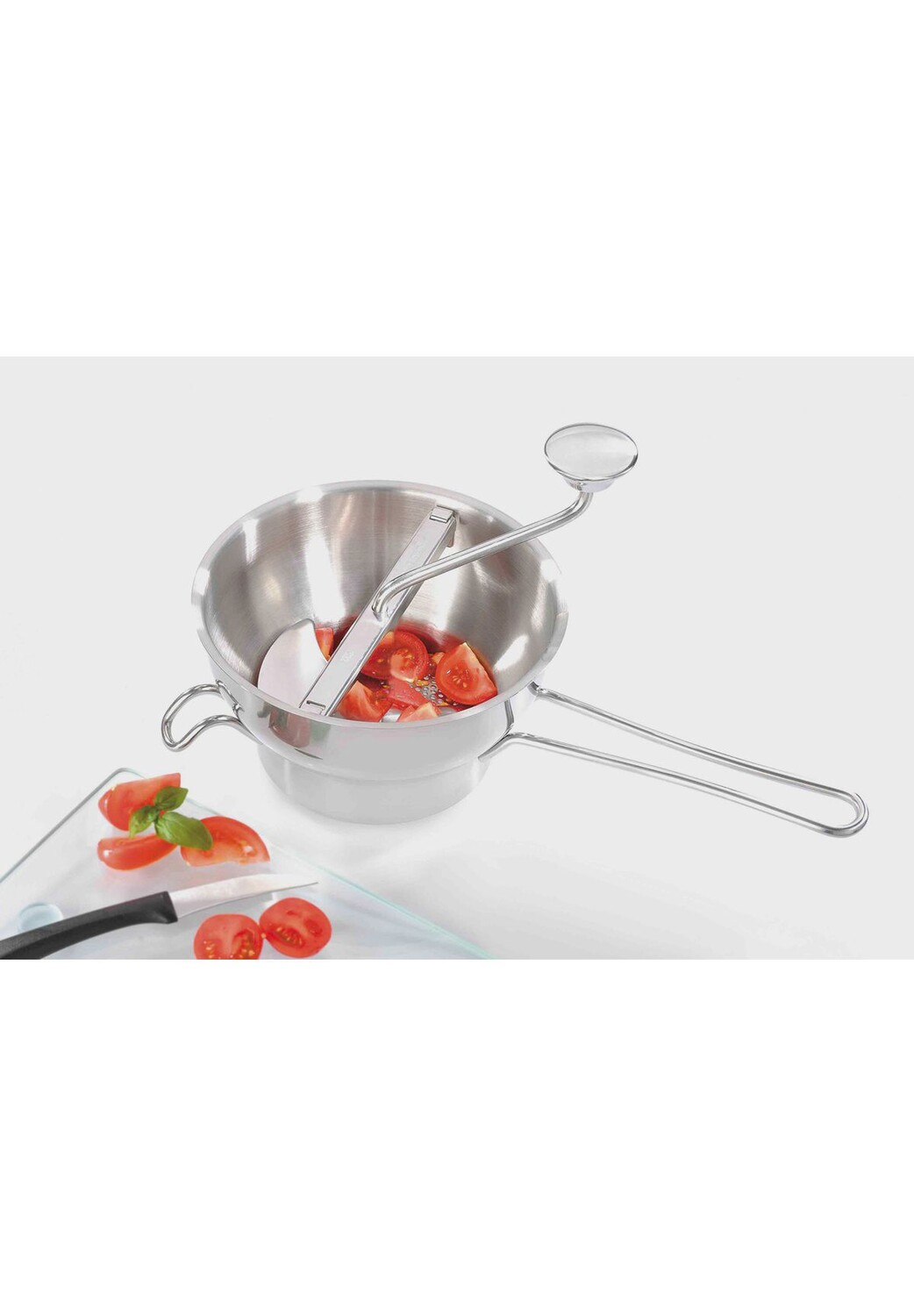 Описание товара: Настоящая кухонная классика для процеживания и натирания фруктов и овощей! Оснащенный запатентованной функцией скребка, он станет идеальным помощником при приготовлении нежных супов, свежего детского питания или нежных овощных пюре. Различные, легко заменяемые перфорированные диски облегчают приготовление желе и т. д. Разумеется, домашний джем и нежные овощные чатни приобретают идеальную консистенцию с помощью FLOTTEN LOTTE! Форма воронки обеспечивает легкое скольжение тертого материала.